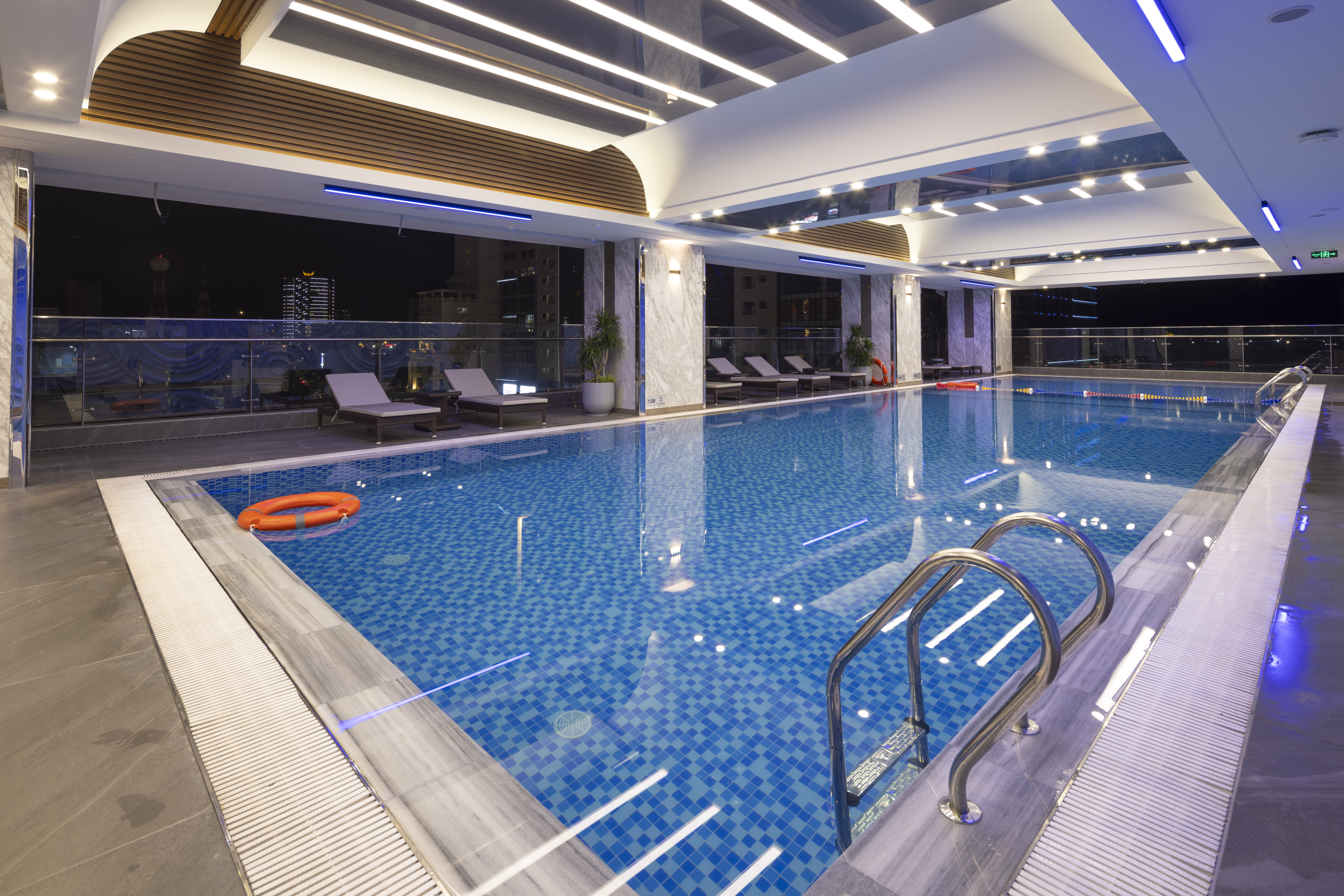 Hồ bơi rộng rãi dành cho người lớn và trẻ em được thiết kế tại tầng 6 của khách sạn với tầm nhìn tuyệt đẹp ra thành phố và biển xanh bao la. Không khí thư thái nơi đây là sự lựa chọn hoàn hảo cho chuyến đi của bạn.